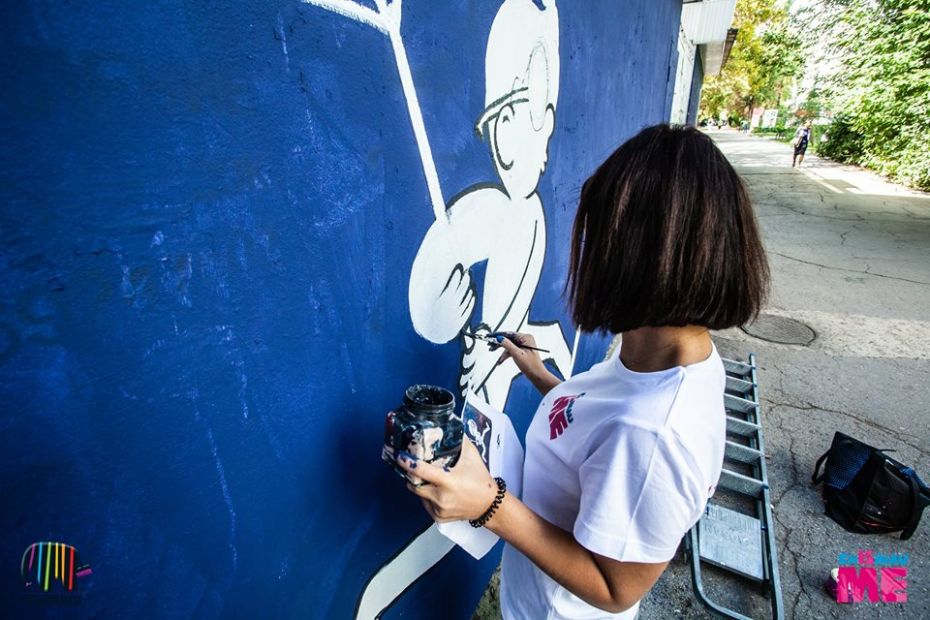 Lângă bătrânul visător situat pe bulevardul Dacia, 9/2 a apărut un nou prieten. E vorba despre un copil cu plasa care levitează prin cosmos, în goană după stele.