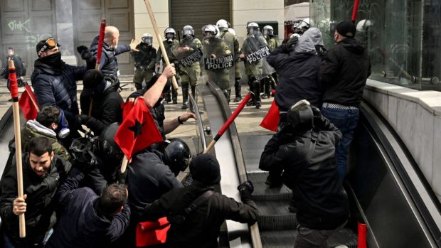 Conform informațiilor, manifestanții au incendiat pubelele de gunoi și au aruncat cu cocktailuri Molotov în stradă, iar poliția Greciei a răspuns cu gaze lacrimogene și cu grenade asurzitoare în plin centrul capitalei elene. La fel, în fața Parlamentului, protestatarii au eliberat către cer sute de baloane negre, în amintirea victimelor coliziunii frontale dintre un tren de călători care făcea legătura între Atena și Salonic și un tren de marfă.